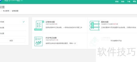 - 可从试卷库、题库或历史考试中选取题目,三种方式灵活设置试卷内容。