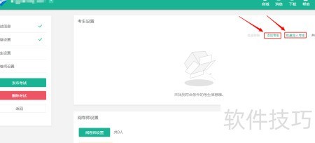 - 完成出题后需添加考生,支持两种方式:普通添加或批量导入。