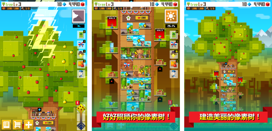 像素树是一款极简风格的休闲养成游戏。玩家需要在主干内部搭建多个功能空间,并通过操控天气系统获取能量资源。例如利用雷雨天气产生的闪电来收集电力,用以维持各区域的正常运转。整个过程融合了模拟经营与资源管理元素,带来别具一格的游戏节奏。