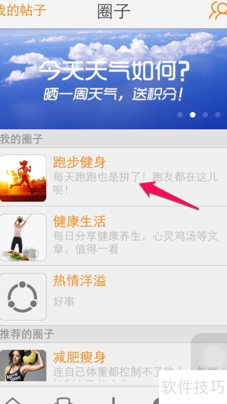 2、 加入圈子后,挑选一个已参与的圈子进入。