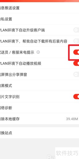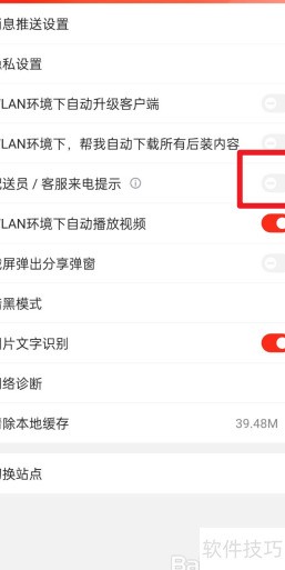 - 进入页面后,点击配送员或客服来电提示右侧的开关按钮。