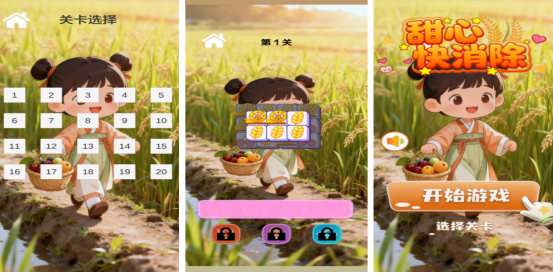 这款游戏以其独特的清新与复古风格设计深受玩家喜爱。它的界面布局充满治愈感,画面极具感染力。在游戏开始时,玩家可以自由选择关卡的挑战顺序。可以选择从最基础的第一关逐步升级,也可以直接面对高强度的挑战。游戏中散布着各种农作物图标,如小麦和稻谷等元素,通过连续匹配消除的方式消除图案即可通关,并解锁更具挑战性的内容。