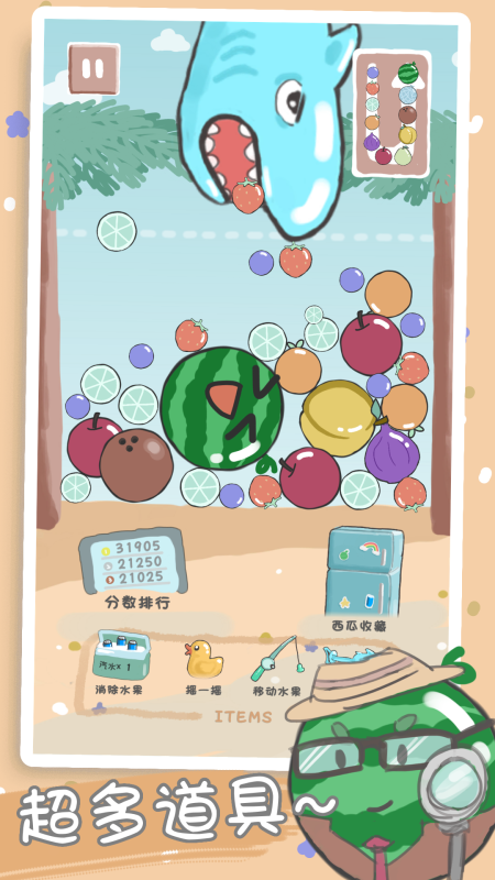 探索奇妙世界在水果合成乐园,你将体验到一种全新的种植与经营乐趣。在这个无限的可能性中,每一步的成长都可能带来惊喜,从猕猴桃到蓝莓,每一类水果都有其独特魅力。通过巧妙的两两融合,解锁高级品种,感受成长的乐趣。此外,独特的合成规则和绚丽多彩的果园背景,不仅丰富了视觉体验,也提升了游戏的趣味性。准备好了吗?一起踏入这个充满无限可能的水果世界吧!