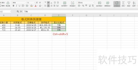 - 第五个技巧:按下Ctrl+Shift+5,数据瞬间变为百分比格式。