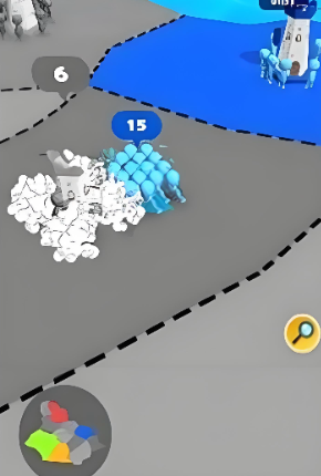 激烈地盘争夺战采用了鲜艳的颜色和高饱和度来区分各区域的控制权。角色设计为充满弹性的橡胶人形态,整体呈现出生动活泼的视觉风格。核心玩法结合了塔防和推线机制,玩家需要在边境部署防御塔以阻挡敌军推进,并同时组织兵力进行反攻。每张地图都拥有独特地形与占领规则,从而创造独特的攻守转换节奏,考验布阵智慧与应变能力。