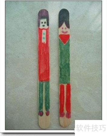 - 用冰棒棍作参照,我画了一男一女两个小人,简单又有趣。
