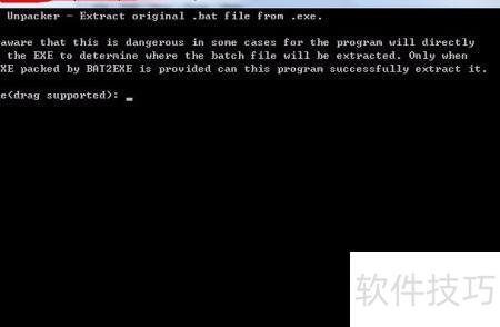 现在是最重要的一步了:将已压缩的BAT到EXE转换程序拖进黑色的命令窗口中,路径信息将会自动显现,确保其没有错误后,请按回车键来启动它。