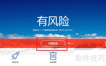 - 点击图中红框区域,选择立即优化即可。