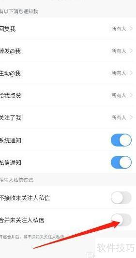 - 找到下方合并未关注人私信选项,确认开启即可。