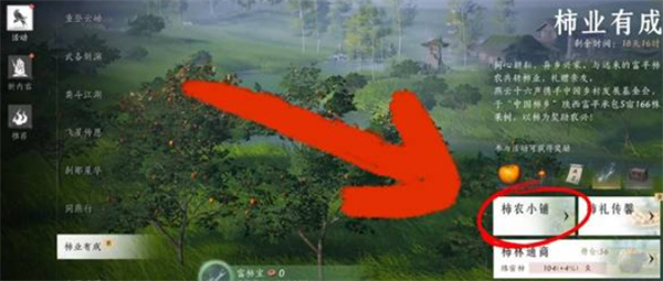 4、进入活动页面,打开 柿子农小铺。连续8天购买所有可买的柿子种子并种植到田地。