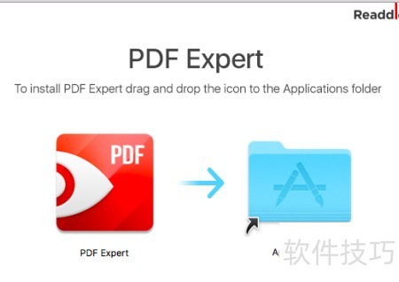 - 将PDF Expert直接拖拽到应用程序文件夹中完成安装。