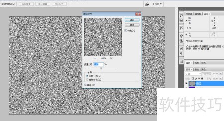 - 选择滤镜中的杂色选项,添加200%杂色,勾选平均分布与单色,确认操作,效果所示。