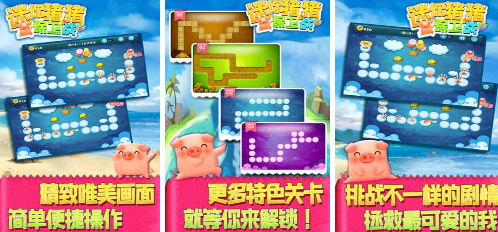 本作是一款策略塔防类型的游戏,主打保护可爱小猪不被敌人抓走。采用了经典的闯关模式,每关的地图布局和敌军路线各不相同,使游戏充满新鲜感。在游戏过程中,玩家需要在轨道两侧部署不同类型的防御塔。例如具备范围攻击能力的炮台或可以发射追踪弹的装置。开局前可以根据敌情预判布防策略,并将合适的塔放置在关键位置,从而有效抵御进攻波次。考验的是玩家的战术规划能力。随着游戏进展,玩家需要不断调整和优化自己的战略布局,以应对越来越复杂的敌人攻击模式。游戏中还设有丰富的资源收集系统,让玩家可以自由发展自己的防御设施,提升整体战斗力。此外,还有多种多样的升级和解锁方式,让每一次挑战都充满了新鲜感和刺激性。通过持续的挑战和策略调整,玩家可以在有限的时间内保护住可爱的小猪,同时体验到策略塔防类游戏的乐趣与挑战。
