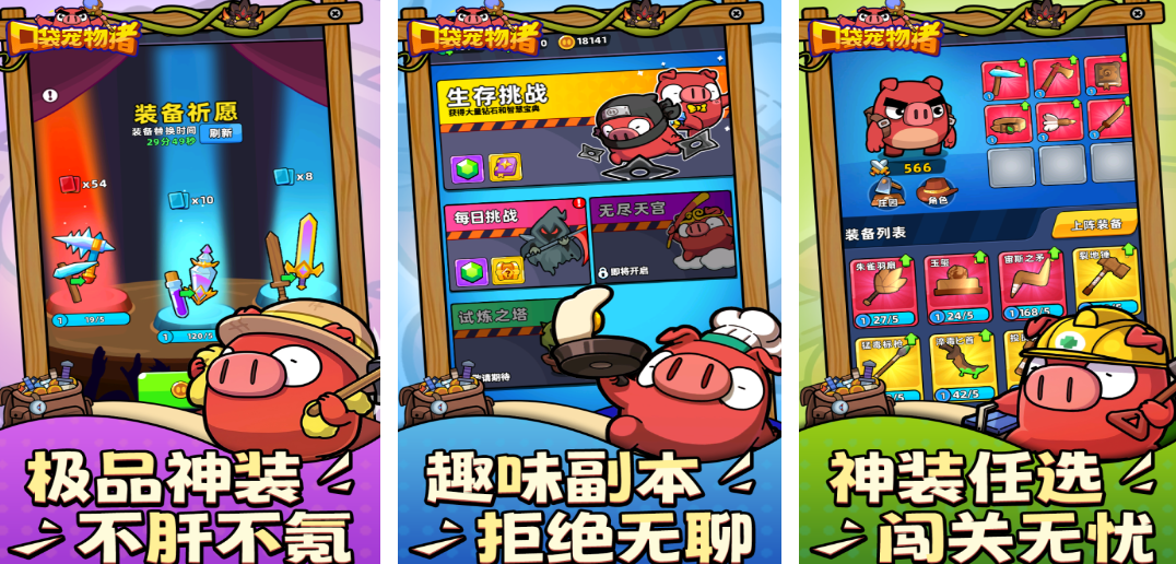 这是一款融合了塔防机制与合成元素的动作闯关游戏,主角是一只外表憨萌的红色小猪。玩家需操控它应对不断生成的随机关卡,在战斗过程中收集掉落的武器零件和配件。每次战斗所获得的装备都不尽相同,玩家需要根据实际情况灵活组合,升级武器系统。此外,游戏中还会出现可选技能,合理选择能大幅提升通关效率,策略与应变能力是取胜的关键。