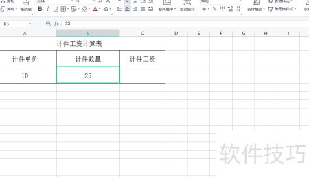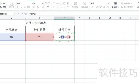 记件工资计算方法详解 时间:2025-11-28 e三明安卓版本下载 类型:生活服务 大小:92.5m 语言:简体中文 评分: 查看详情 记件工资计算方法详解 记件工资如何计算?具体方法如下。 - 打开名为计件工资计算表的Excel文件 - 录入计件单价与数量。 - 在计件工资的单元格中输入公式A3*B3。 - 按下回车键即可自动计算计件工资。