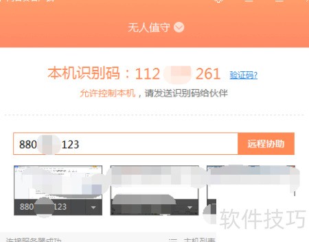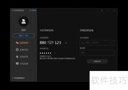 - 在向日葵远程控制界面输入目标电脑的识别码,然后点击远程协助即可连接。
