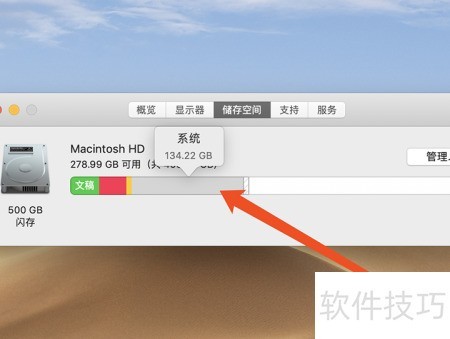 在MacBook Pro上,点击左上角的苹果图标,然后选择“关于本机”,接着点击“存储空间”以查看详情。