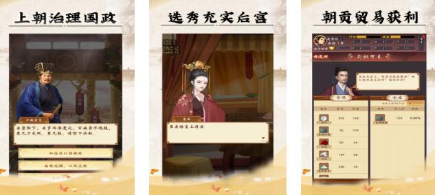如果你有幸穿越回到古代,成为一国之君,你会如何治理天下?游戏中高度还原了历史背景,让你有机会与众多历史名人互动,并亲身参与重大历史事件。作为皇帝,你不仅需要处理繁重的朝政事务,还要平衡六部事务、管理后宫事务。随着进程推进,还需培养太子、开拓丝绸之路以增强国力,全面体验帝王生涯的权谋与责任。