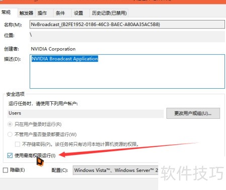 - 在任务计划程序中查找并定位NVIDIA Broadcast相关选项。