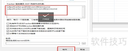 在制作种子前,应选择供他人下载的服务器地址。一般情况下,软件会预先设置好默认地址,无需手动输入,仅需确认后即可轻松制作种子文件。