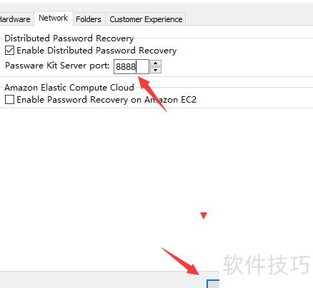 - 在passware kit服务器端口处填写8888即可完成设置。
