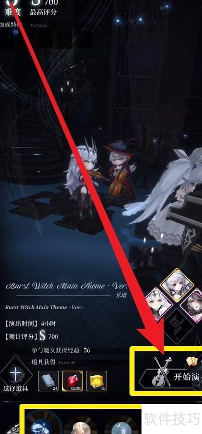 - 选定魔女后,点击底部开始演奏,等待结束即可返回领取奖励。