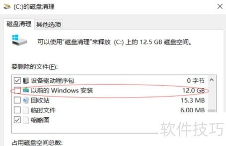 打开磁盘清理功能; 勾选需清理的系统文件; 选取以前的Windows版本; 确认无误后,删除Windows.old文件夹。