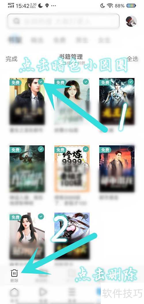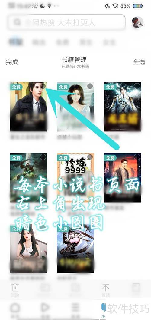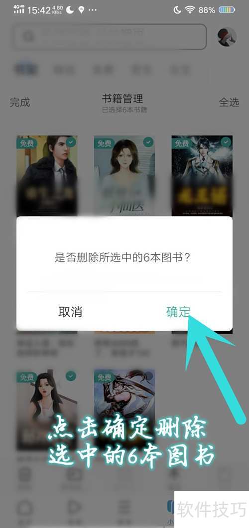 在小说管理界面,轻点下方的圆形图标,然后选择删除功能。确认后,你将成功移除六个选定的小说。