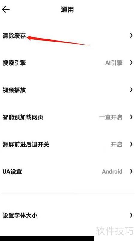 - 进入通用页面,找到并点击清除缓存选项。