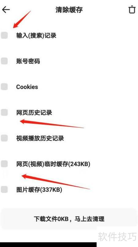 - 按照页面提示,依次点击清除缓存选项。