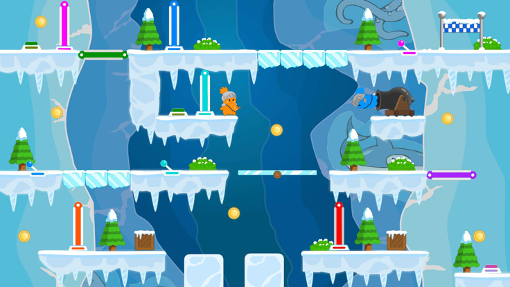 这是一款核心在于协作的横版闯关游戏,玩家需要操控黄猫和蓝猫两个角色进行操作。黄猫擅长近战,具有强大的清怪能力;而蓝猫则可以远程射击,用于开启机关。两人需充分利用各自技能,共同挑战重重关卡。游戏内设有多个挑战关卡,包括复杂的冰桥和岩浆阀门等机关,并需要玩家收集宝石一同到达终点完成任务。