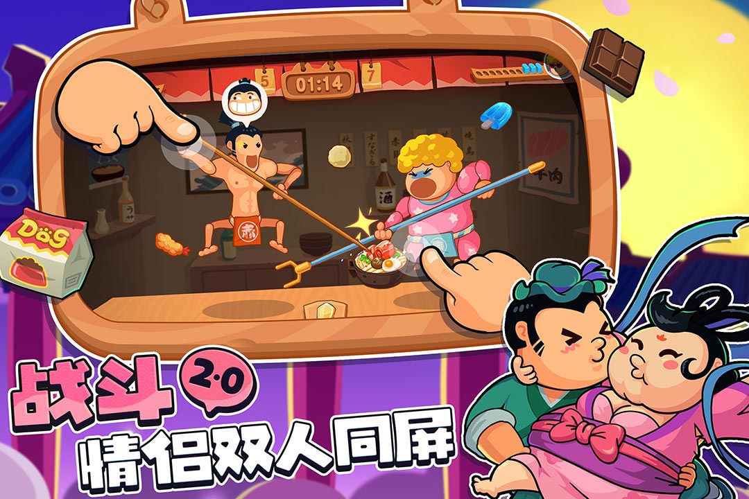 这是一款充满趣味性和策略性的双人对战手游,允许两位玩家分别控制不同的角色进行竞猜与竞争。在这款游戏中,两方通过手中握杆的方式争夺从空中掉落的食物,并尝试将食物送到对方的嘴里,从而达成胜利。获胜的关键在于合理运用走位技巧和功能性道具以干扰对手。食物种类繁多,高能量类型会迅速使目标变得过重,增加被击败的风险;同时,人物体型也会因吃食量的变化而调整,画面极具喜感。游戏不仅考验策略与速度,还融入了体力和智慧元素。通过巧妙的走位、道具使用以及适时的干扰对手,玩家可以逐渐缩小自己与胜利之间的差距。这款游戏集成了丰富的食物种类和变化多端的画面效果,为玩家们提供了既有趣又能挑战自我乐趣十足的游戏体验。