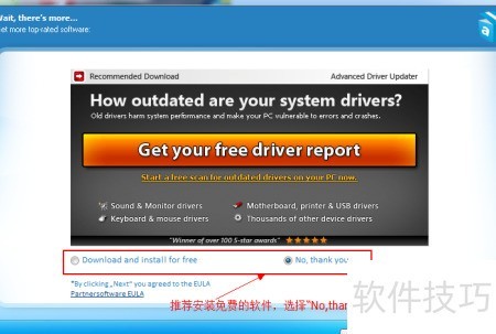 - 所示,选择是否安装推荐的免费软件,然后点击下一步继续操作。