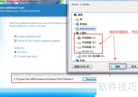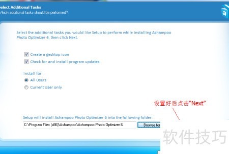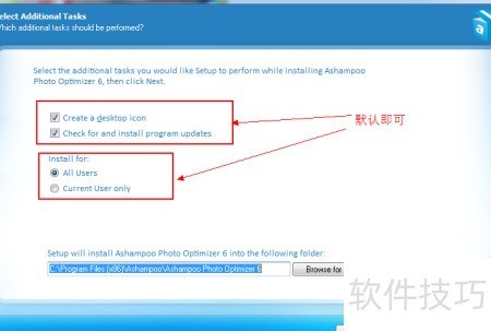 - 所示,选择是否创建快捷方式并指定安装路径,点击下一步继续。