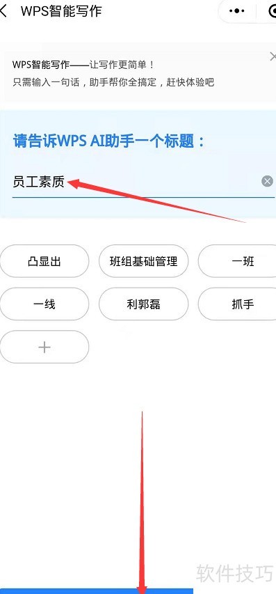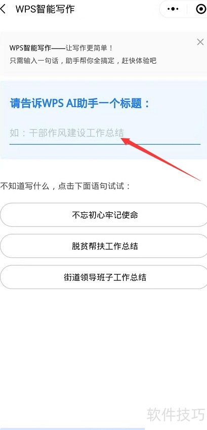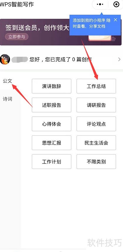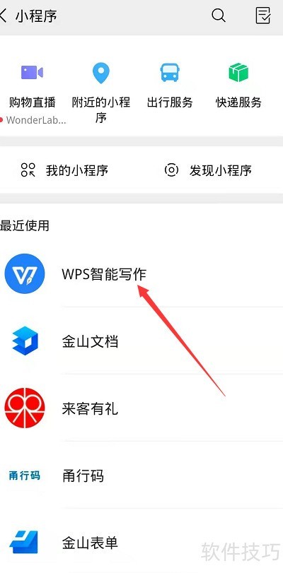 - 打开微信,搜索并进入WPS智能写作小程序即可使用。