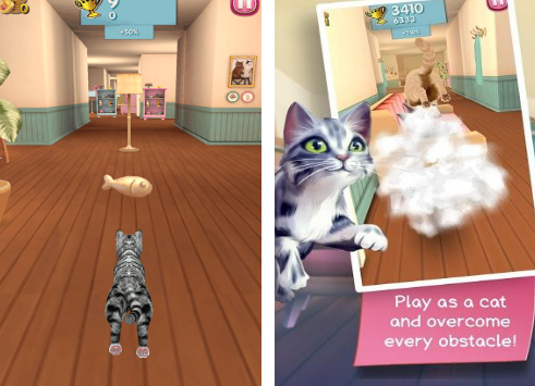 本作以真实猫咪为原型,打造出极具逼真性的宠物跑酷体验。不同品种的猫咪可以通过解锁使用,其外观细节贴近现实,呈现方式为第一人称视角,让玩家在屏幕上看到猫咪的身体大部分部位,增强沉浸感。游戏中的环境充满了狗狗和其他潜在危险因素,玩家需要快速闪避,并通过获取食物和积分奖励来挑战自己的技能极限。