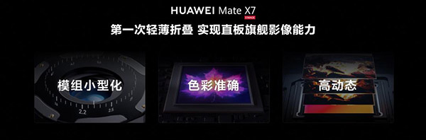 其后置四摄包括像素可变光圈主摄、像素光学长焦潜望镜头、像素超广角及第二代红枫原色摄像头,被余承东称为“折叠屏影像之王”。