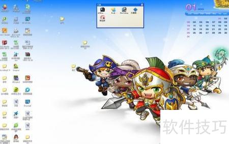 - 桌面图标看似杂乱,实则可按类别有序区分。