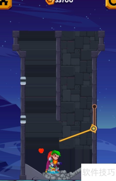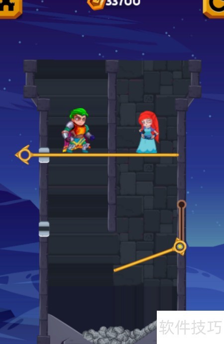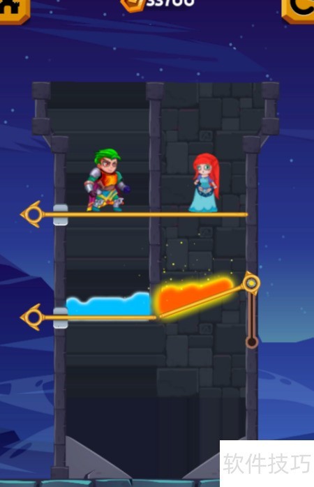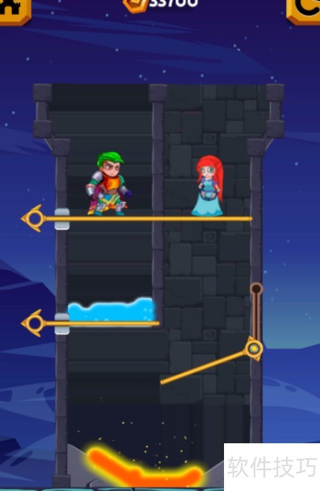 - 本关需操作两个横向拉针和一个斜向推拉杆,解救被困公主,具体布局见示意图。