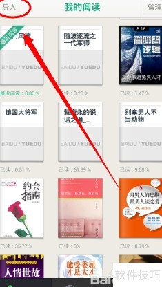 百度阅读支持导入手机中的电子书,包括小说、杂志等,具体操作方法如下。