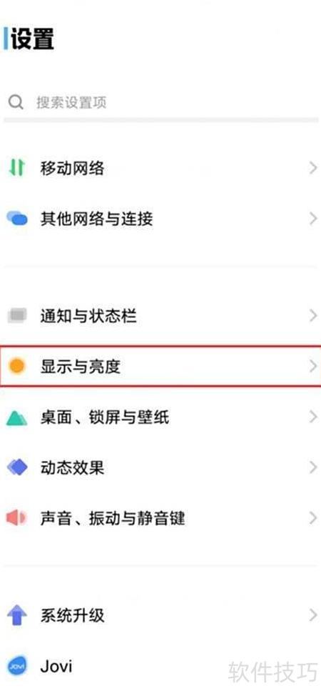 - 打开设置,选择显示与亮度选项。