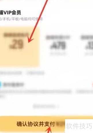 - 进入酷喵VIP页面,选择所需时长,勾选协议并点击支付,即可成功开通会员服务。