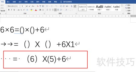 现场云平台 类型:学习办公 大小:186.56mb 语言:简体中文 评分: 查看详情 6×6=()×()+6 填空解法 在Word文档中输入算式,按乘法分配律规则填写括号内数字。 - 输入计算式 - 打开Word文档,输入需要填空的算式。 - 解析算式 - 算式末尾多出一个6,可拆解为6乘以1。 - 填写括号内容 - 依据乘法分配律,填写括号中的数字。