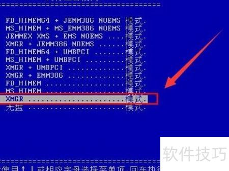 - 在内存组合模式界面,将光标移至K.XMGR...模式,按下回车键确认选择。