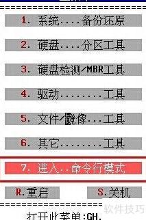 - 在主菜单工具窗口中,用光标选中进入命令行模式并按回车确认,操作所示。
