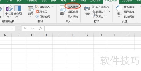 - 所示,在空白工作表中演示图片批量导入操作,第一步是点击DIY工具箱选项卡。