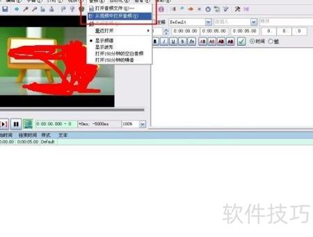 - 导入视频文件:点击视频菜单,选择打开视频文件,加载需要添加字幕的视频内容。
