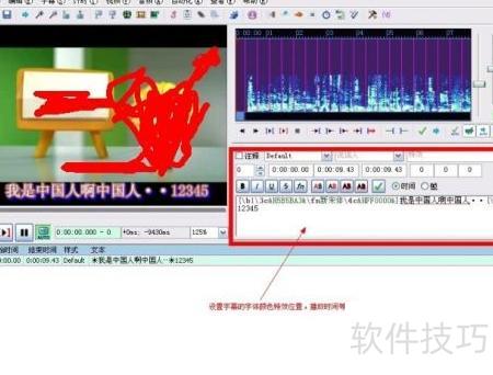 右侧框架内可以调整字幕的颜色、字体样式和大小,并且还可以为字幕添加特效;上方的时间显示区允许手动设定字幕的播放起始和终止时间。