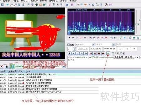 - 在需要添加字幕的位置点击开始按钮,即可从此处启动字幕显示。