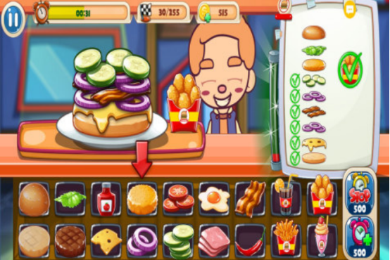 在这个游戏中,汉堡的制作是主要任务之一,但营造紧张气氛也是一种锻炼时间和管理能力的方式。每一关开始时,都会有一个规定的时间限制,确保你能按时为所有客户准备足够的汉堡。制作汉堡的方法很简单,接单后要迅速处理,避免顾客长时间等待。